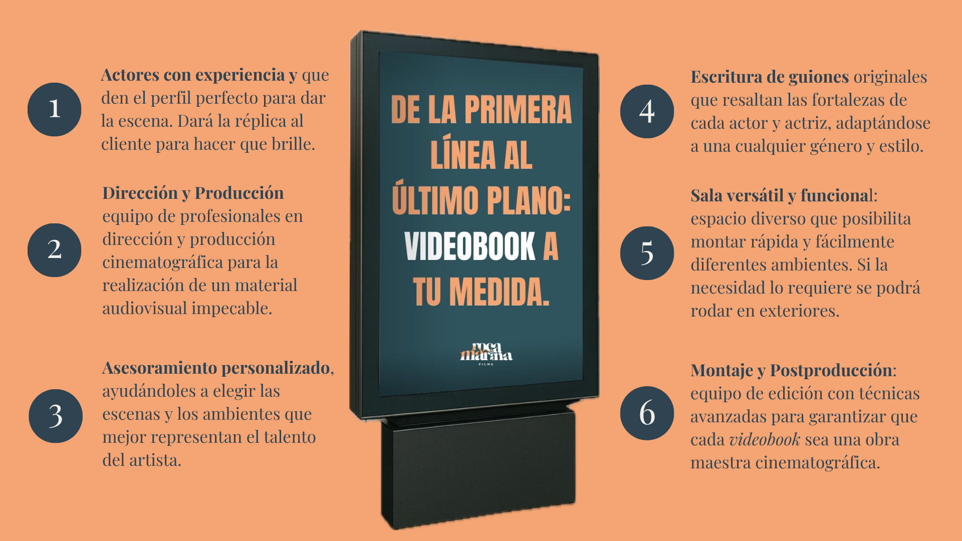 Nada de guiones reciclados: escribimos material a medida para mostrar lo mejor de tu interpretación. Nos ocupamos de todo el proceso: guion, dirección, ensayo, rodaje y montaje. Te acompañamos en cada decisión.